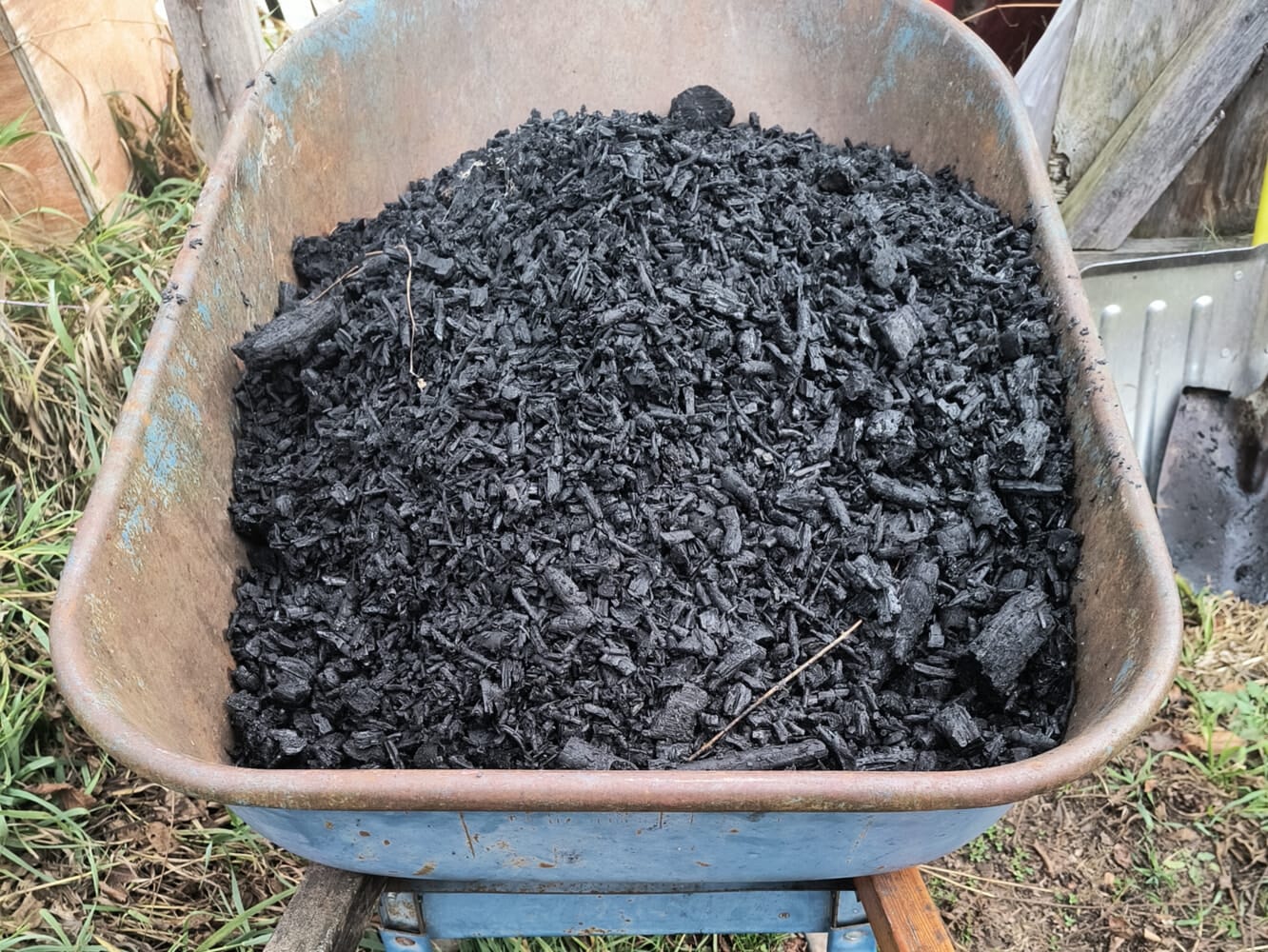 Biochar starts as biomass – plant matter, old wood, agricultural waste – that is pyrolyzed, or heated to high temperatures without oxygen. The result is a solid chunk of carbon that no longer releases CO₂ back into the atmosphere. Biochar is an example of a CDR method that comes with an end product that can be used for many things including as a soil amendment, to build roads, water filtration, and so much more.